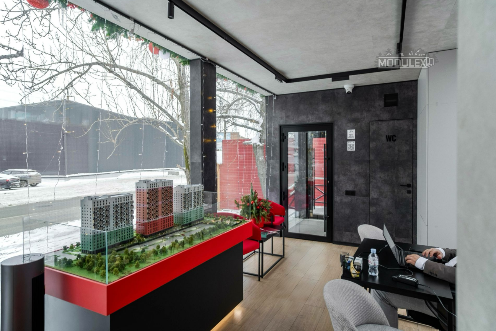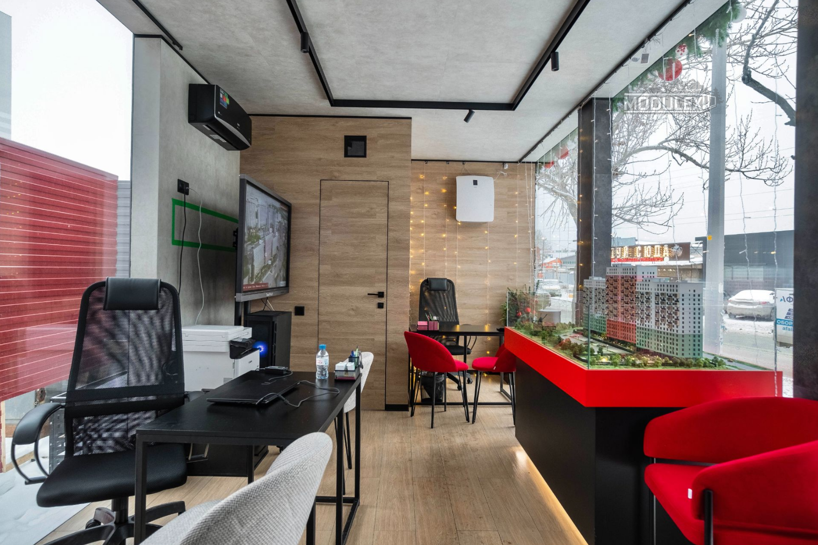 Полная заводская готовность: Модуль был укомплектован всем необходимым для начала работы: 3 рабочих места, тамбур, санузел, подсобное помещение.